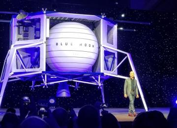 Sci-&-TechThe private spaceflight company Blue Origin revealed the first life-size mockup of its new lunar lander, named "Blue Moon," at the Washington Convention Center on Thursday.