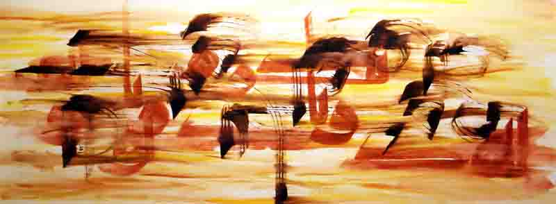 In the exhibition titled ‘Sparks of Desert’, Shirinbab has displayed his works of a new painting style, created and coined by himself, called ‘Poem Painting’.  It is a style in which he uses both linguistic and aesthetic powers of words to create a poetic visual art piece.