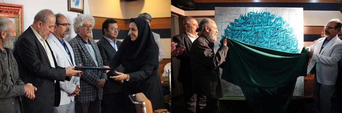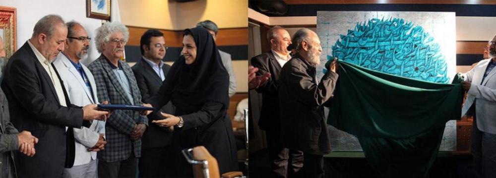 Owners of the 9 top galleries were honored and the last work of the veteran calligrapher Ali Shirazi was unveiled.  The 2m by 2m acrylic artwork depicts names of Shia Imams in turquoise.