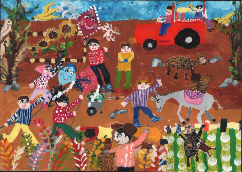 The painting of a 10-year-old Iranian boy from Isfahan Province was selected among the finalists in the World Food Day Poster Contest 2014 titled ‘Family Farming’.