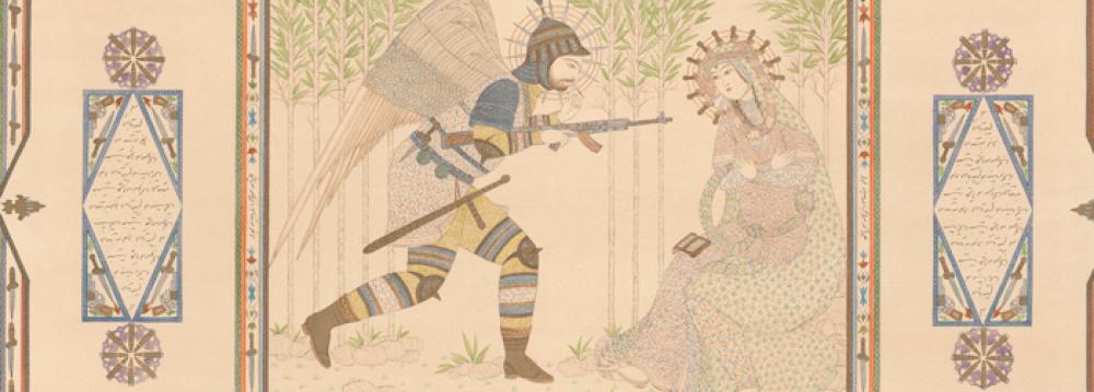 Moreover, the artist said she found the impassive look of miniature figures suitable for her male and female protagonists engaged in universal themes. “In the collection, I selected famous artistic icons, because of some concept I liked, and then added my ideas and style of painting. I also made use of all three traditional characteristics of Persian miniatures - calligraphy, Tazhib, which are decorative arts and book illuminations, and painting.”