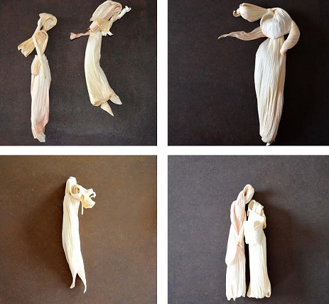 Fresh corn husks are flexible enough to be twisted and shaped. “Yet, when they dry up, they become solid forms. Furthermore, the husks have natural twists and pleats that can take different shapes.”
