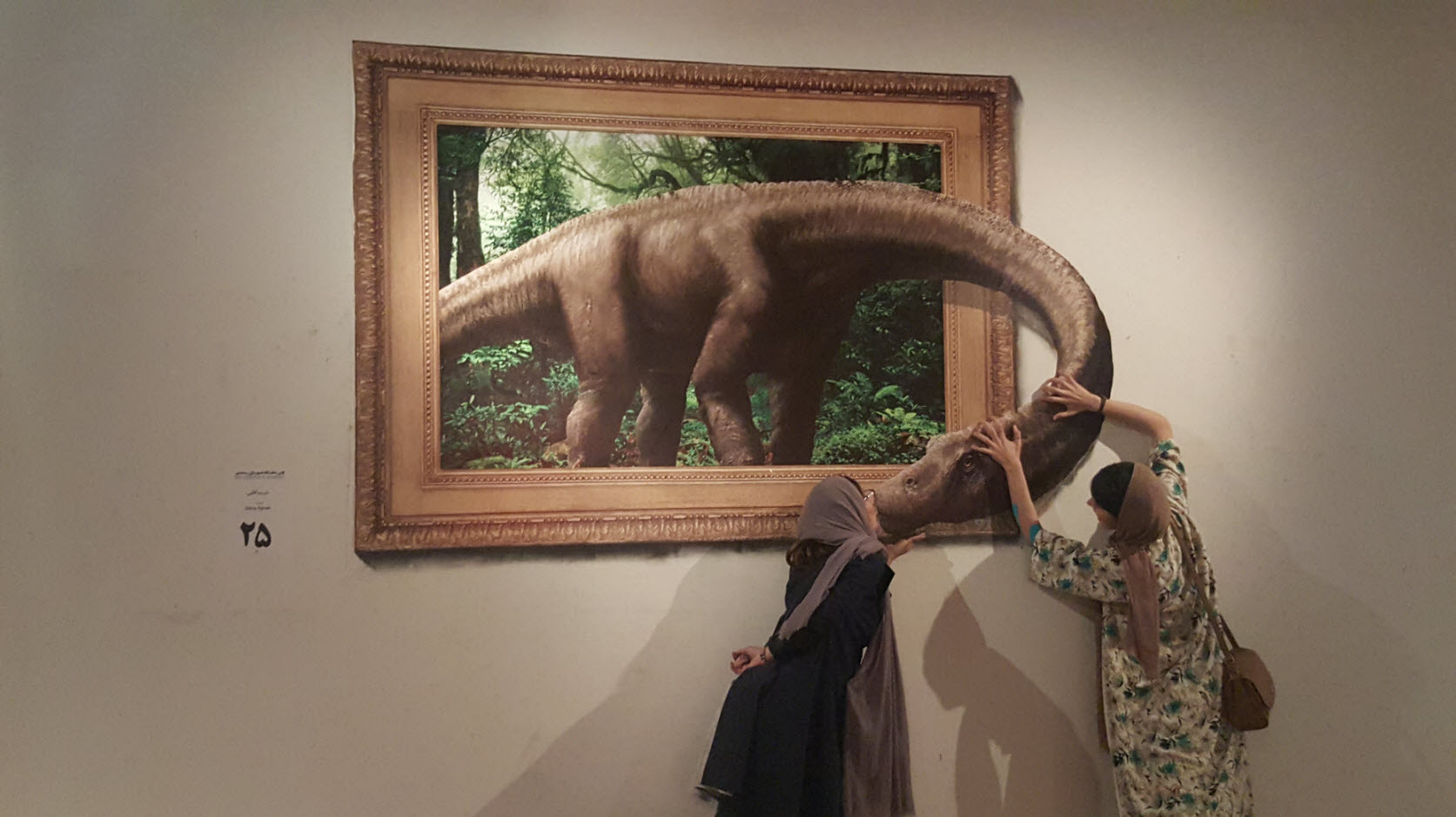 Shima Aqaei, one of the participant artists said she has presented three works, two set on the wall and one on the floor. “One of the works on the wall is a dinosaur, trying to break a red door. The work creates an attractive and challenging situation for the visitors, who have the opportunity to find the right angle to blend with the painting and pose for a photo.”