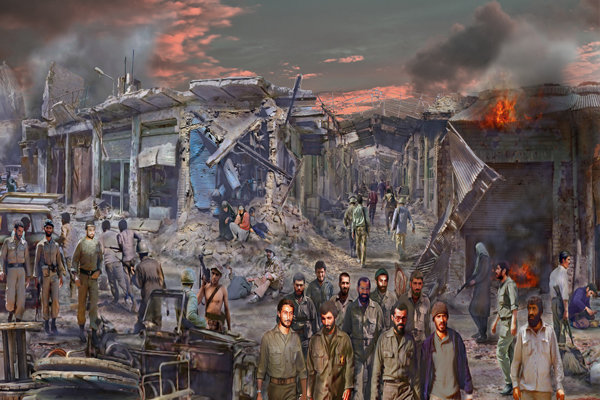 The 59-year-old artist’s work portrays scenes of the 1980-88 Iran-Iraq war, known as Sacred Defense in Iran.