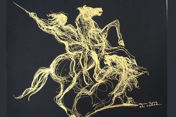 Titled ‘From Among Myths,’ the series includes abstract drawings of horses, horseriders and lions on black canvases, Mehr News Agency quoted Nedaei as saying.