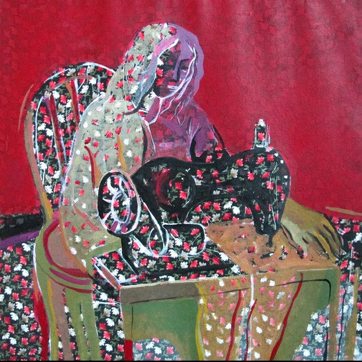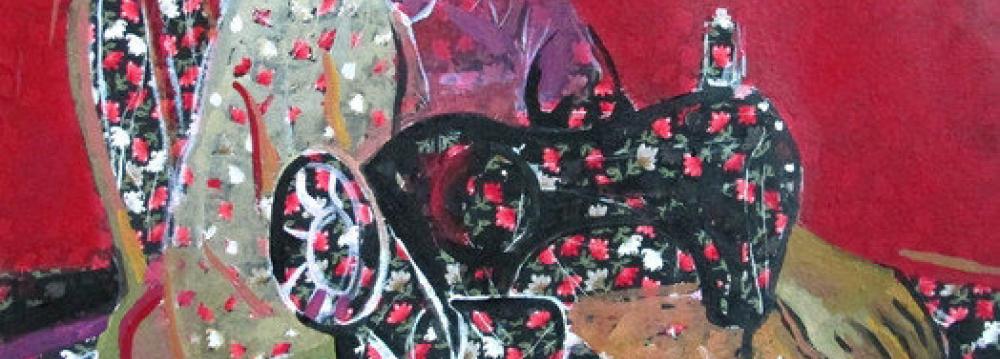 Golestan Gallery in Tehran hosted the creations of a female artist whose semi-figurative art works use elements such as female figures, sewing machines and textiles.