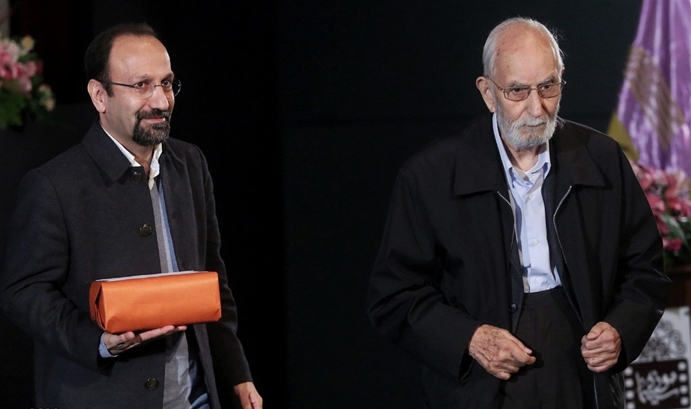 At the end of the ceremony, head of Iranian Organization of Cinema Hojatollah Ayoubi, filmmakers Bozorgnia, Reza Mirkarimi, Mohammad Ali Najafi and Mostafa Kiai presented two calligraphies created by veteran artists Einoddin Sadeqzadeh and Gholam-Hossein Amirkhani to Farhadi.