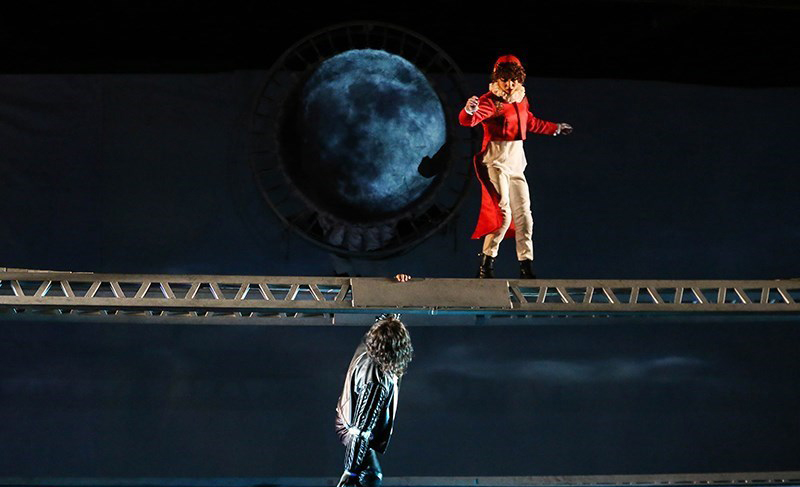 Performance is dynamic and adventurous, with the actors suspended from midair. Mise-en-scenes have numerous vertical motions. The stage is dominated by physical acts and youthful violence.