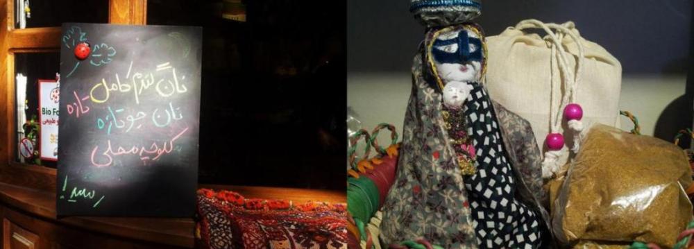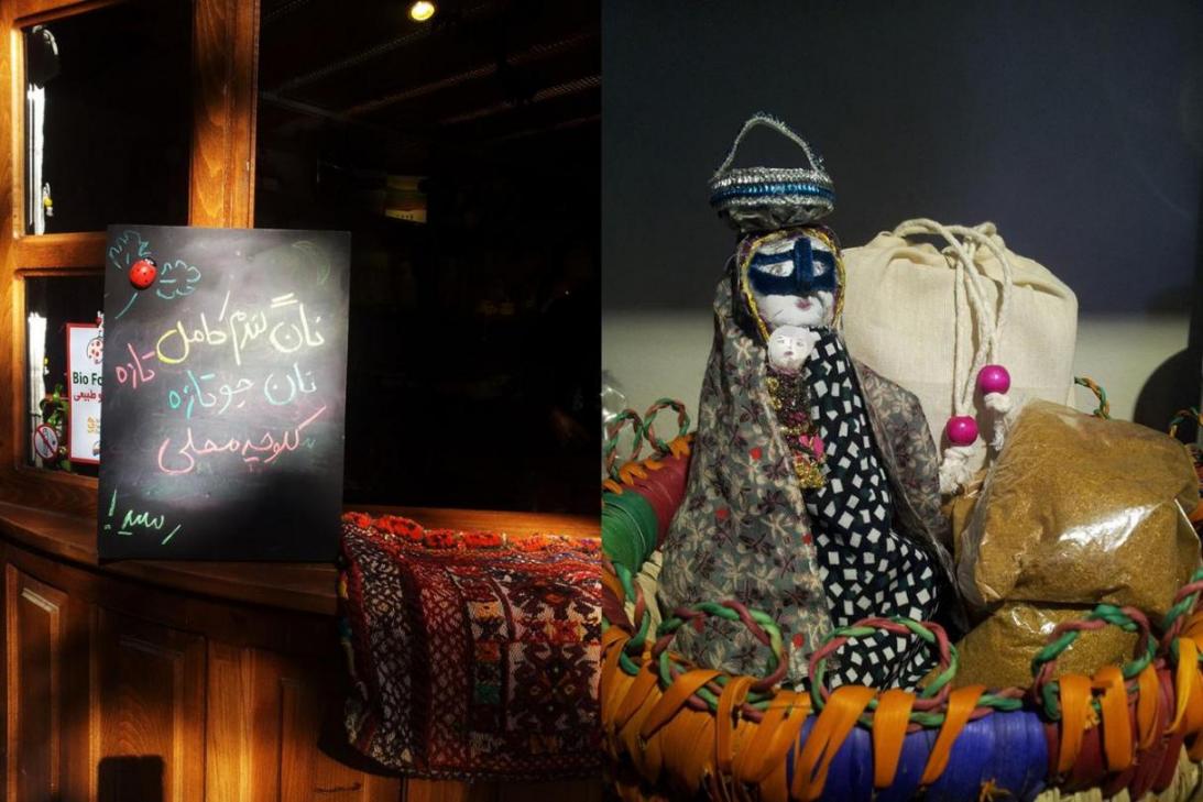 The shop sells cultural materials and food products of rural people most of which are prepared by women. The handicrafts consist of dolls, Jajim-a type of rug, bags, and decorative materials; and the food items are breads, honey and jam, herbs, oils, herbal water, dried fruits, and local food.