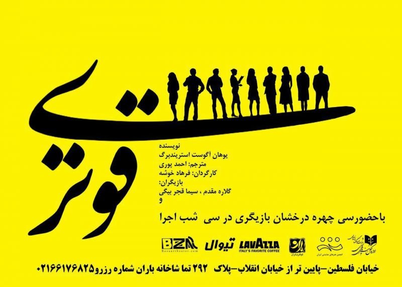 ‘Stronger’ a play written by Swedish playwright Johan August Strindberg and directed by Iranian theater director Farhad Khousheh is on stage at Baran Theater Hall. Written in 1889, the play consists of only one scene. The characters are two women sitting at a cafe: a “Mrs. X”, who speaks about her emotional feelings and relationship, and a “Miss. Y”, who is silent, an example of a dramatic monologue. The cast includes Gelareh Moqadam and Sima Qajarbeigi. The 40-minute play will be performed through September 22 at Baran Theater Hall located at No. 292/1, Felestin St., south of Enqelab St.