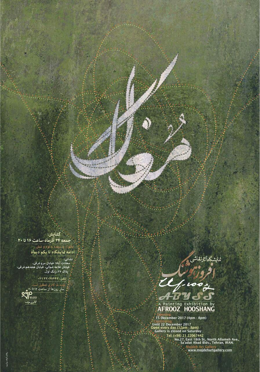 ‘Abyss’ will be open from 4-8pm at Mojdeh gallery located at No.27, Eastern 18th St., North Allameh Ave., Sa’adatabad neighborhood.