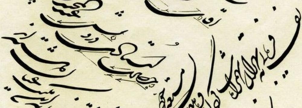 Calligraphies featured at the exhibit are in Nasta’liq, which is among the most fluid calligraphic styles with short vertical and long horizontal strokes.