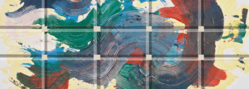 Still true to his architectural roots, in his artworks Nour-Keyhani takes inspiration from designs he has made through the years, transforming them into abstract and colorful compositions.
