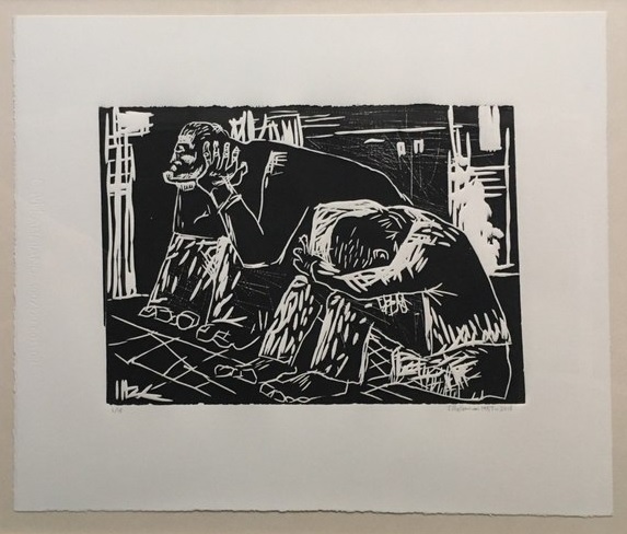 It also features two photo etchings by New York based illustrator Nahid Haghighat, a monoprint by modernist Iranian-American painter Nikzad Nodjoumi, a black and white chalcography and a monoprint by sculptor Samila Amir Ebrahimi and a mythical chalcography by Ahmad Vakili.