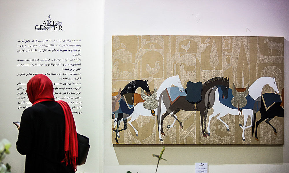 A painting exhibition titled “Riderless Horses” is underway at Art Center Gallery in Tehran featuring horses, some saddled or bridled, trotting or standing.
