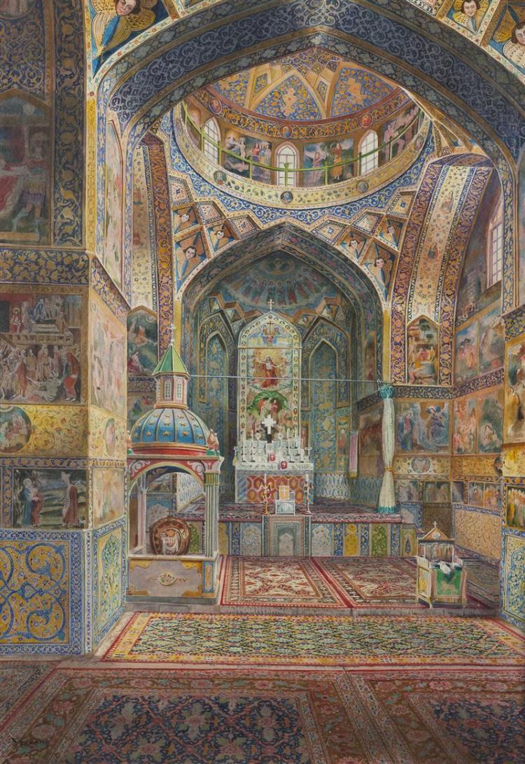 His works depict architectural monuments - churches and mosques - and marketplace in Isfahan.