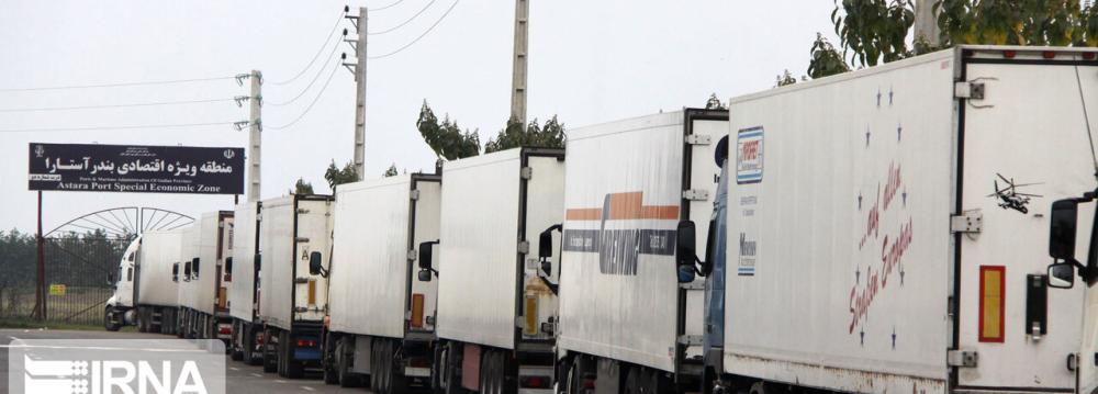 The report noted that 5.7 million tons of foreign goods were transited by road through Iran during the same period, indicating a 12% year-on-year rise.