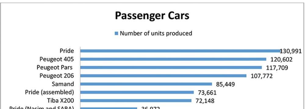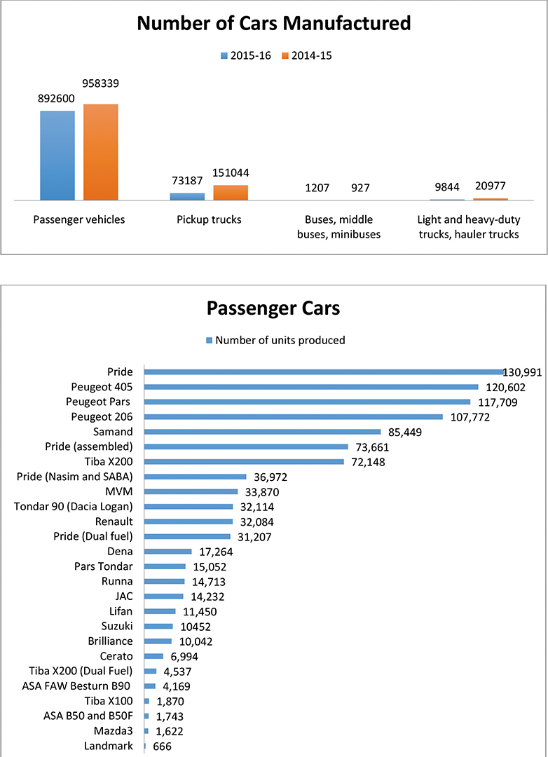 Iran's car manufacturers produced a total of 976,836 units of passenger and commercial vehicles in the last Iranian year (ended March 19, 2016).