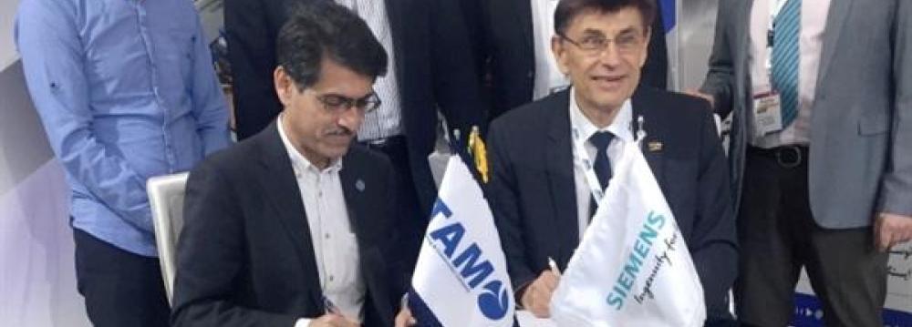 TAM Co, an auto parts subsidiary of Iran Khodro (IKCO), and Germany’s Siemens signed a memorandum of understanding (MoU) on Sunday to develop joint projects and facilitate future production.