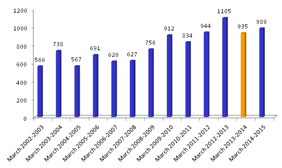 Meanwhile, investments in the sector could be analyzed by reviewing the expenditures on import of textile machinery. On average, about $250-300 million per year have been spent on textile machinery imports over the past 12 years.