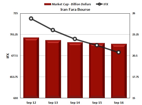 Mirroring TSE’s dented sentiment, Iran Fara Bourse’s overall index dipped 42.2 points or 5.8% during the same week to stand at 681.