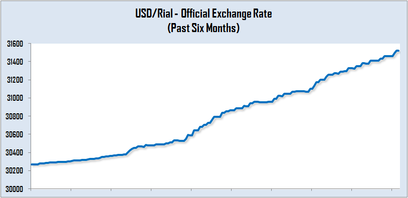 The official rate recorded a 2.36% growth during the past six months.  The central bank has been increasing the official exchange rate of foreign currencies, in accordance with its plans to unify foreign exchange rates.