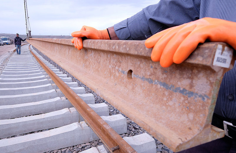 Track-laying for a railroad linking the city of Mianeh in the northwestern East Azarbaijan Province to its capital city Tabriz started on Friday in the presence of Minister of Roads and Urban Development Abbas Akhoundi. In the first phase, rail tracks for 158 kilometers of the route, from Mianeh to Bostanabad will be laid. The minister was quoted as saying by IRNA that the Mianeh-Tabriz route will reduce the current 714 km Tehran-Tabriz journey to 600 kilometers. “[The new route] will play an important role in the expansion of rail transit in the region,” Akhoundi said, hoping that the first section will become operational by late August.