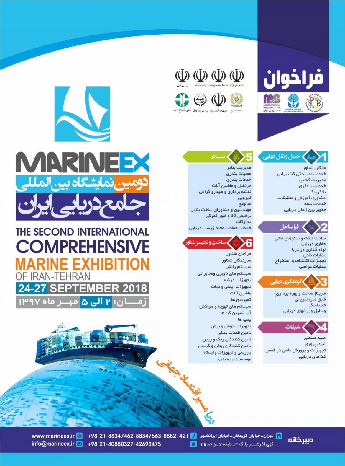 The Second International Comprehensive Marine Exhibition is scheduled to open at Tehran International Fairground on Sept. 24. According to the official website of the event at Marineex.ir, the exhibition provides a platform for active players in the industry to showcase their latest products, interact with producers, traders and experts, and to negotiate agreements. The four-day event will conclude on Sept. 27. A large portion of Iran’s trade ia conducted via marine routes. Shahid Rajaee Port in the south of Iran is the country’s biggest commercial and container port.