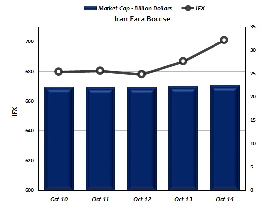 At Iran Fara Bourse, more than 504 million securities worth $73.73 million were traded during the same week to post a 5% rise and 34% fall in trade volume and value respectively.