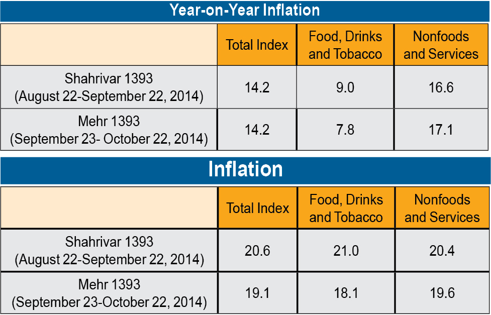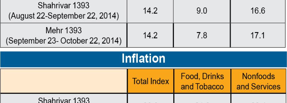 Inflation averaged 39 percent in 2013 (the Iranian calendar year of 1392). However, the Rouhani administration, which took power last summer, has focused on taming inflation. Since the government started to implement its economic plans, inflation rate has plummeted from a peak of 45.1 percent year-on-year in June 2013 to 14.6 percent in July 2014. For the January-July period inflation has averaged 18.9 percent year-on-year. A sharp downward trend in food price inflation, helped by weak global prices, has also contributed significantly to lower inflation, the SCI report report said.