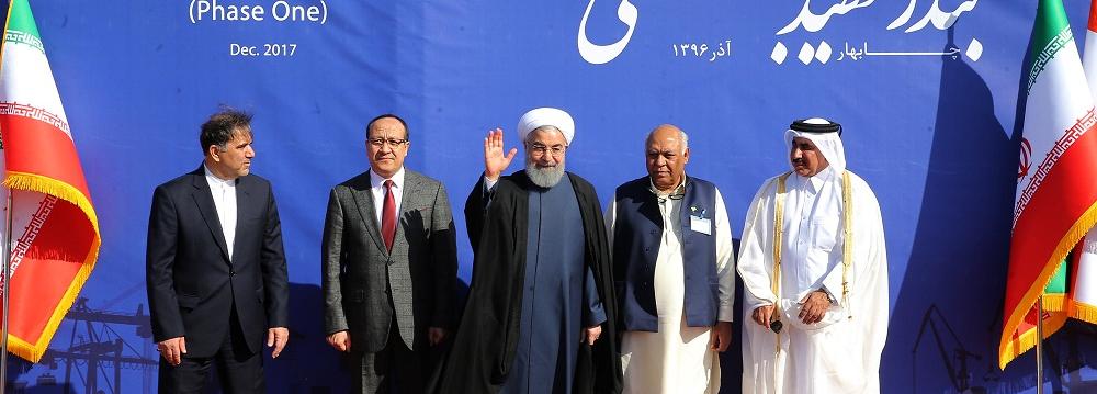 President Hassan Rouhani, who is visiting the southeastern province of Sistan-Baluchestan, inaugurated the first phase of Chabahar’s Shahid Beheshti Port on Sunday.