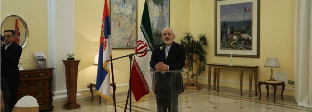Foreign Minister Mohammad Javad Zarif made the announcement in a joint economic forum between Iranian and Serbian businesspeople held on Tuesday.