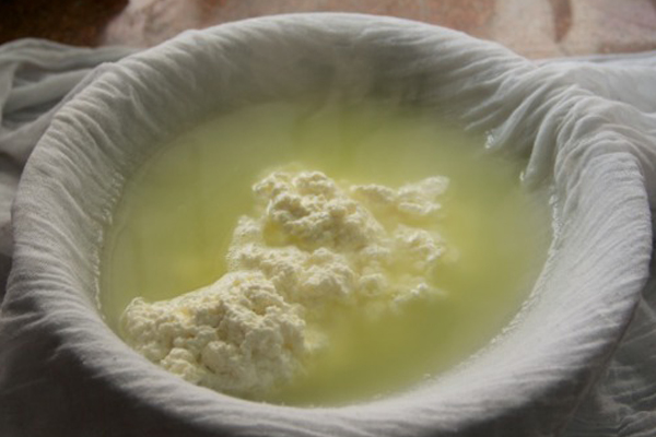 Whey is the liquid remaining after milk has been curdled and strained. It is a byproduct of the manufacture of cheese or casein and has several commercial uses. Sweet whey is a byproduct produced during the manufacture of rennet types of hard cheese, like Cheddar. Acid whey (also known as sour whey) is a byproduct of making acidic types of dairy products, such as cottage cheese or strained yogurt.