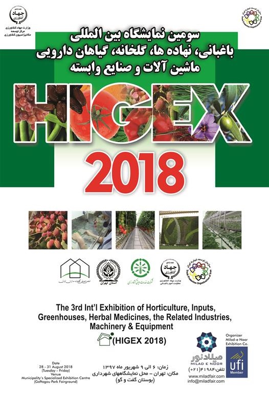 The Third International Exhibition of Horticulture, Raw Materials, Greenhouses, Herbal Medicines and Related Industries, Machinery and Equipment, also known as HIGEX 2018, will be held in Tehran from August 29 to 31. The exhibition is scheduled to be held at Tehran Municipality’s Specialized Exhibition Center at Goftogou Park, the organizer of the event said. “Some 90 local and foreign companies will participate in this year’s exhibition,” Ali Mohtasham Amiri was also quoted as saying by ILNA.