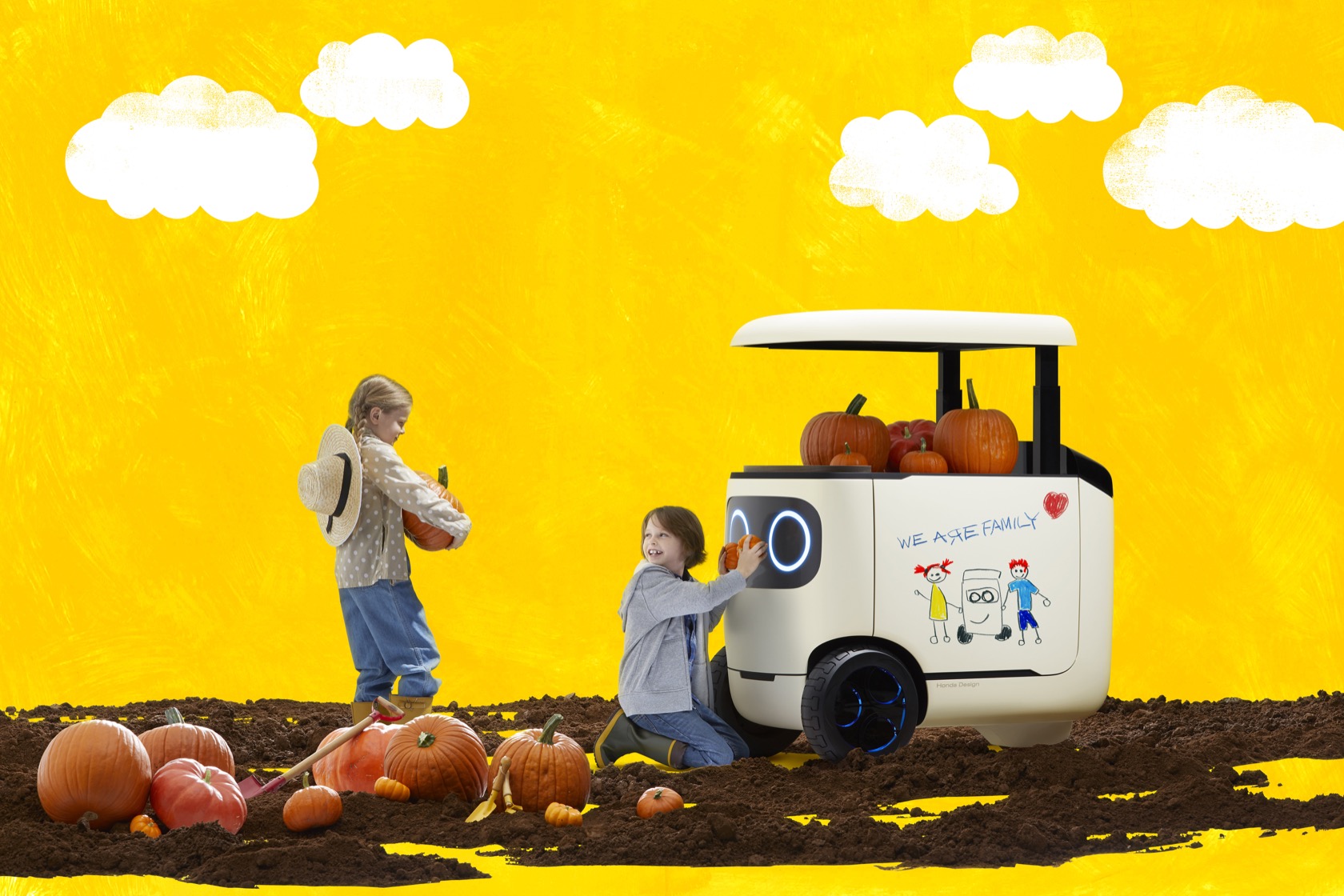 Honda envisages the body as being customizable and modular, allowing for different types of carrying space. Above it, there is a height-adjustable canopy. They are all mounted on a compact body base, which presumably uses electric power.