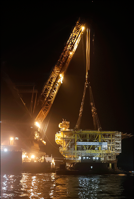 Pars Oil and Gas Company experts along with Iran Shipbuilding And Offshore Industries Company specialists, managed to install the platform, using Oceanic 5000 crane ship and Abouzar 110 vessel, Shana reported. The platform was loaded from Bandar Abbas and Khorramshahr yards two weeks ago.