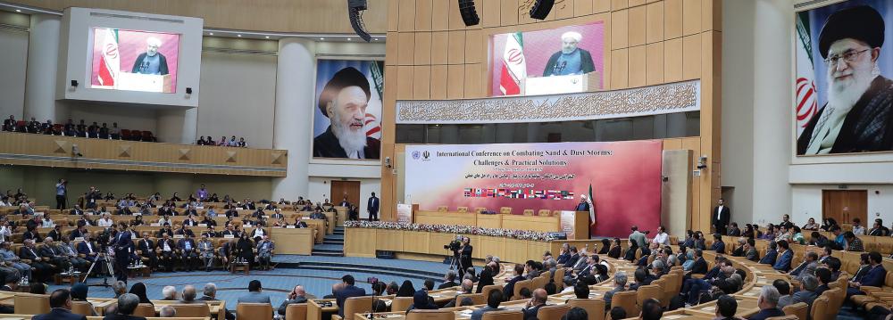 Speaking at the opening of the three-day International Conference on Combating Sand and Dust Storms in Tehran on Monday, Rouhani said environmental problems directly affect health, adding that addressing environmental woes is integral to stopping mass migrations, Mehr News Agency reported.