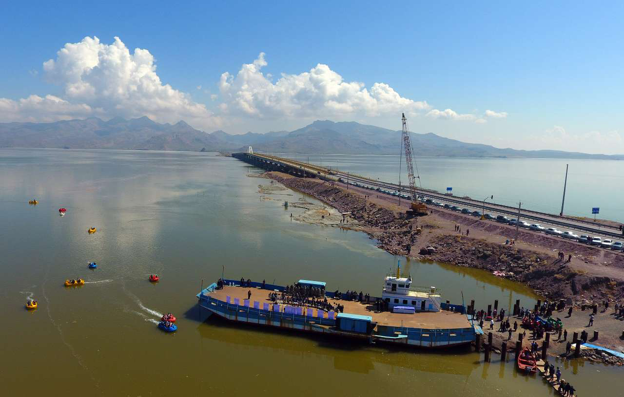 However, it dried up drastically due to a variety of factors, including the construction of a 15-km causeway to shorten the travel time between Urmia and Tabriz cities and the construction of several dams that have choked off water supply from the mountains on either side of the lake.