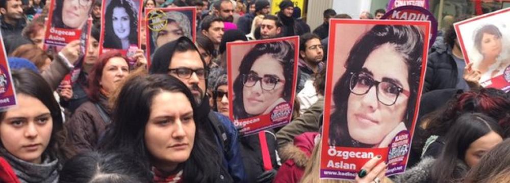 Thousands of people in Turkey took to the streets on Saturday in protest at the murder of a young woman who allegedly resisted an attempt by a bus driver to rape her.
