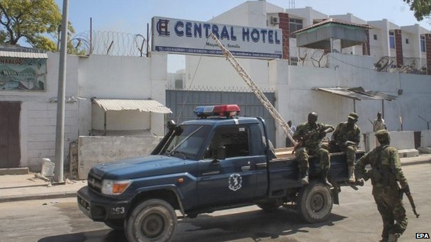 The Central Hotel, often frequented by politicians, was hit by a car bomb and a suicide attack. Gunmen then stormed the hotel mosque and opened fire during Friday prayers, BBC reported.