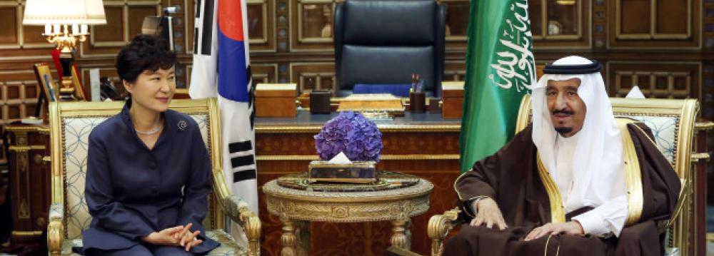 Later in the afternoon, the South Korean president met Crown Prince Muqrin bin Abdulaziz al-Saud and Prince Mohammed bin Nayef, second in line to the throne of Saudi Arabia, to discuss ways to strengthen bilateral ties.