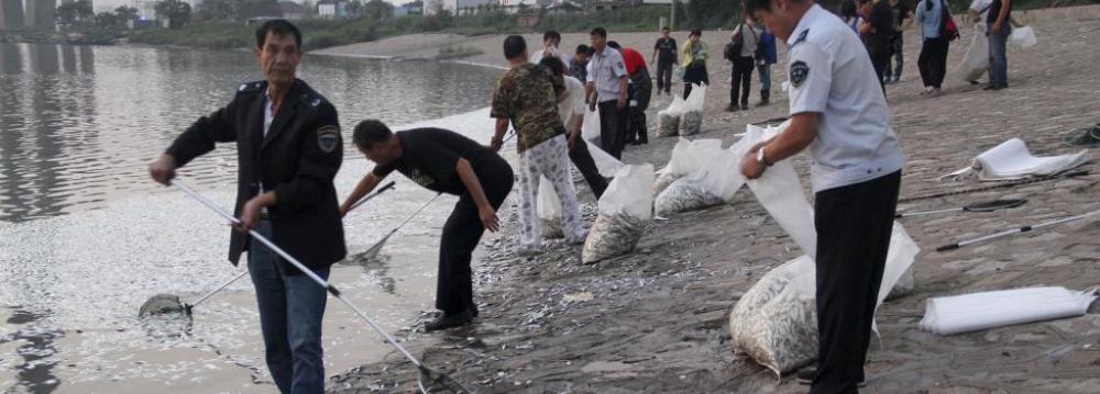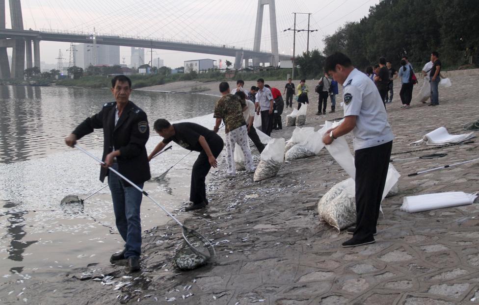 Pictures published on Thursday showed workers scooping thousands of dead fish out of the Haihe River near Tianjin, a day after authorities had declared the city’s drinking water was safe.