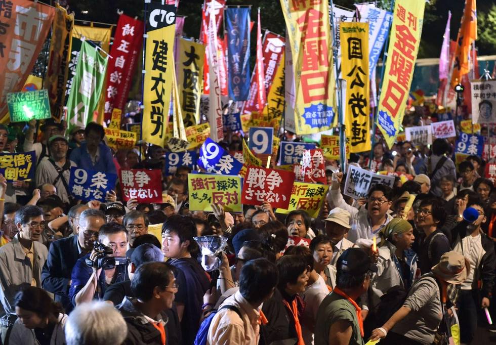 Abe had been unable to muster support to amend the pacifist constitution and instead opted to “reinterpret” the meaning of self-defense in order to push through the new laws, but the move has sparked a groundswell of opposition not seen for decades in Japan.