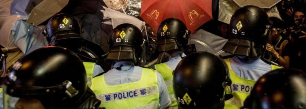 Hong Kong police said in a statement released early Saturday they had made 26 arrests in confrontations with a crowd that had swelled to 9,000 people by 3 am (1900 GMT), with 15 officers sustaining injuries in the commotion.