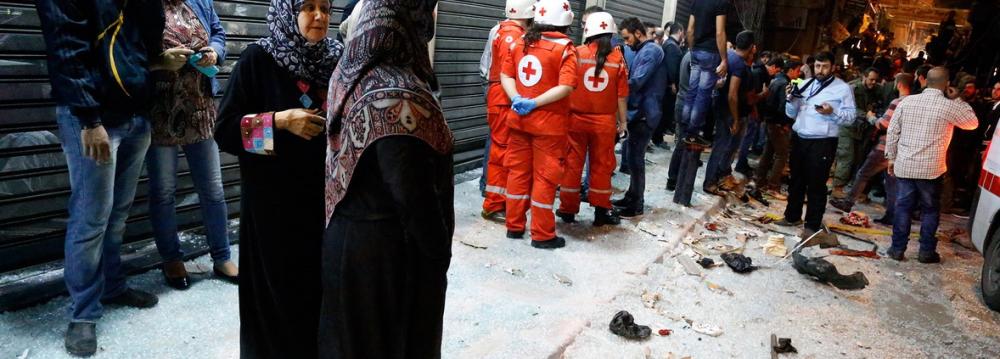 "What happened here is a crime ... This battle against terrorists will continue and it is a long war between us," Hezbollah official Hussein Khalil said from the site of the explosions.