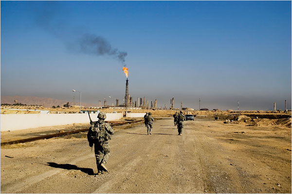 They said a series of bombings beginning in the early hours hit the town of al-Siniya, west of Baiji, a strategic city adjacent to the country's largest refinery, part of a multinational effort to check the group's progress.
