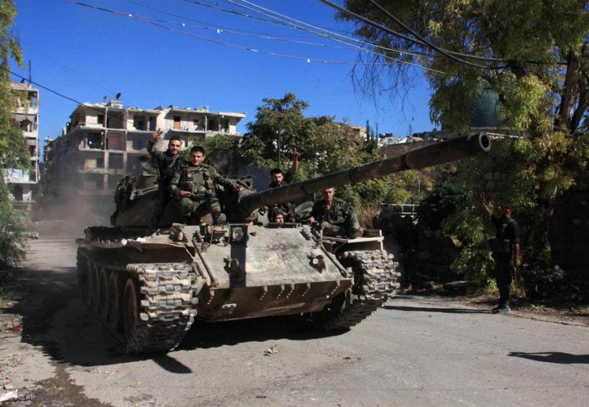 Syrian troops pushed ahead in their offensive in Aleppo on Saturday capturing the strategic Um al-Shuqeef hill near the Palestinian refugee camp of Handarat that government forces captured from militants earlier this week, according to state TV.