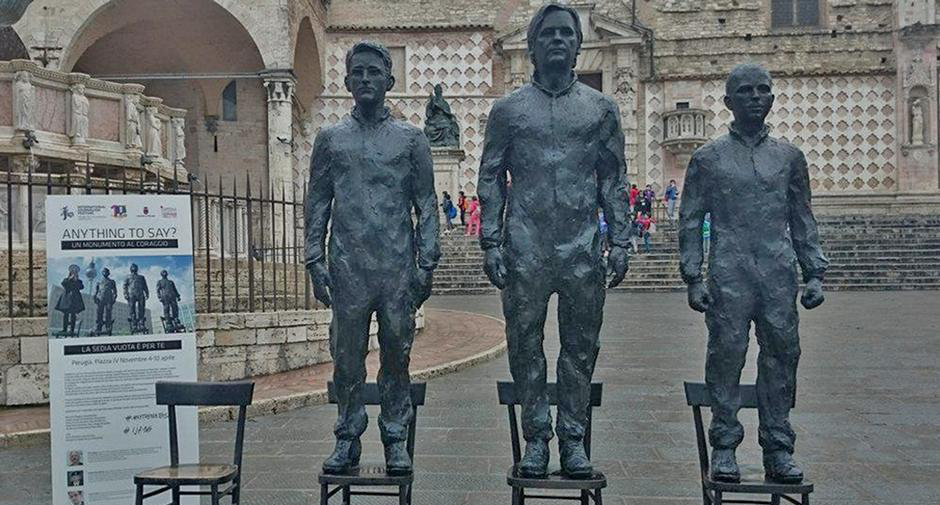 Bronze sculptures of whistleblowers Snowden, Assange and Manning in Perugia, Italy.