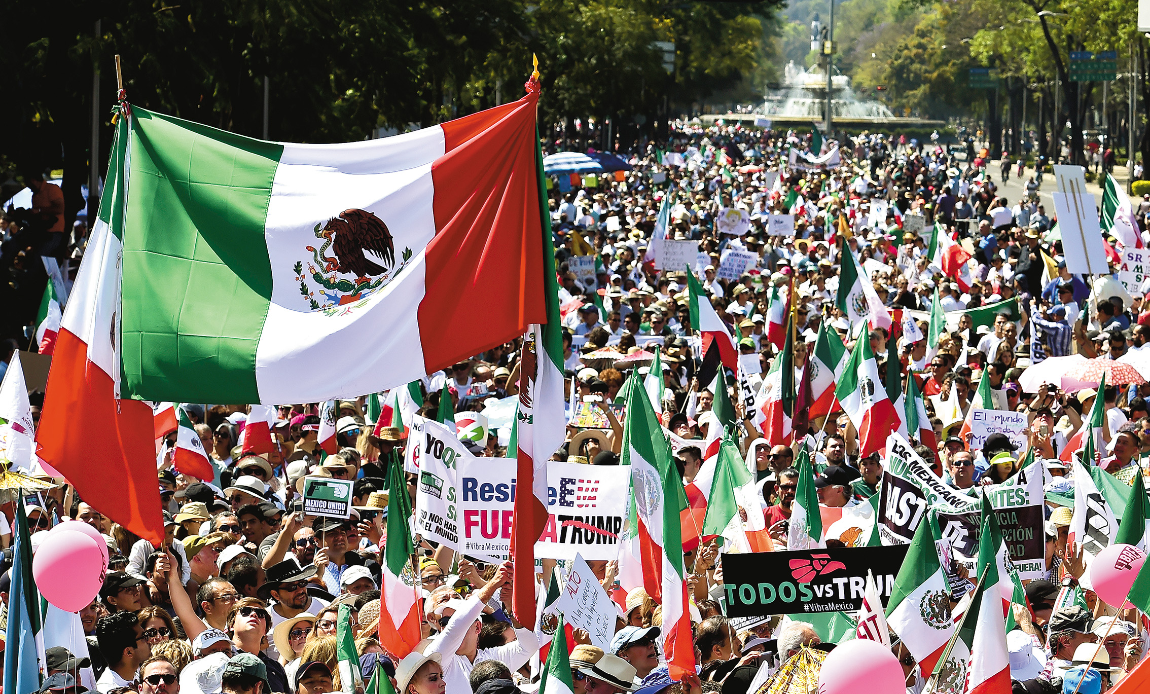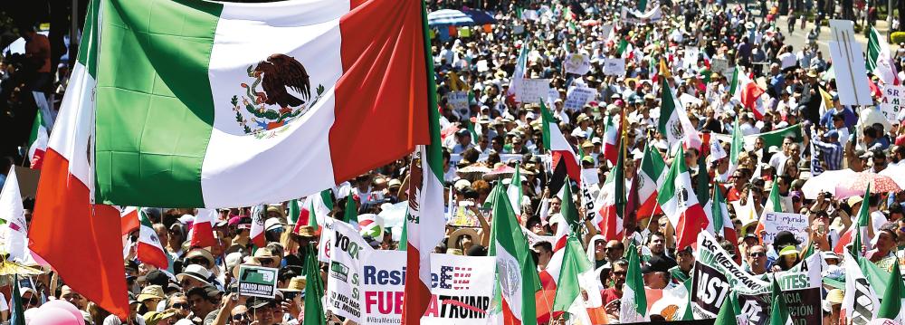“Mexico must be respected, Mr. Trump,” said a giant banner carried in Mexico City by protesters who waved a sea of red, white and green Mexican flags as they marched down the capital’s main avenue under the watchful eyes of thousands of police, AFP reported.