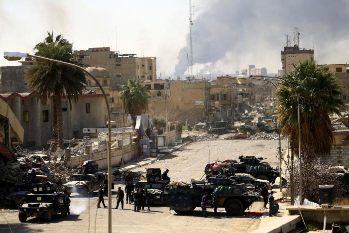The militants looted the central bank when they took over the city in 2014 and took videos of themselves destroying statues and artifacts. Illegal traffic in antiquities that abound in the territory under their control, from the sites of Palmyra in Syria to Nineveh in Iraq, was one of their main source of income. Prime Minister Haider al-Abadi flew into Mosul to visit the troops engaged in the fighting.